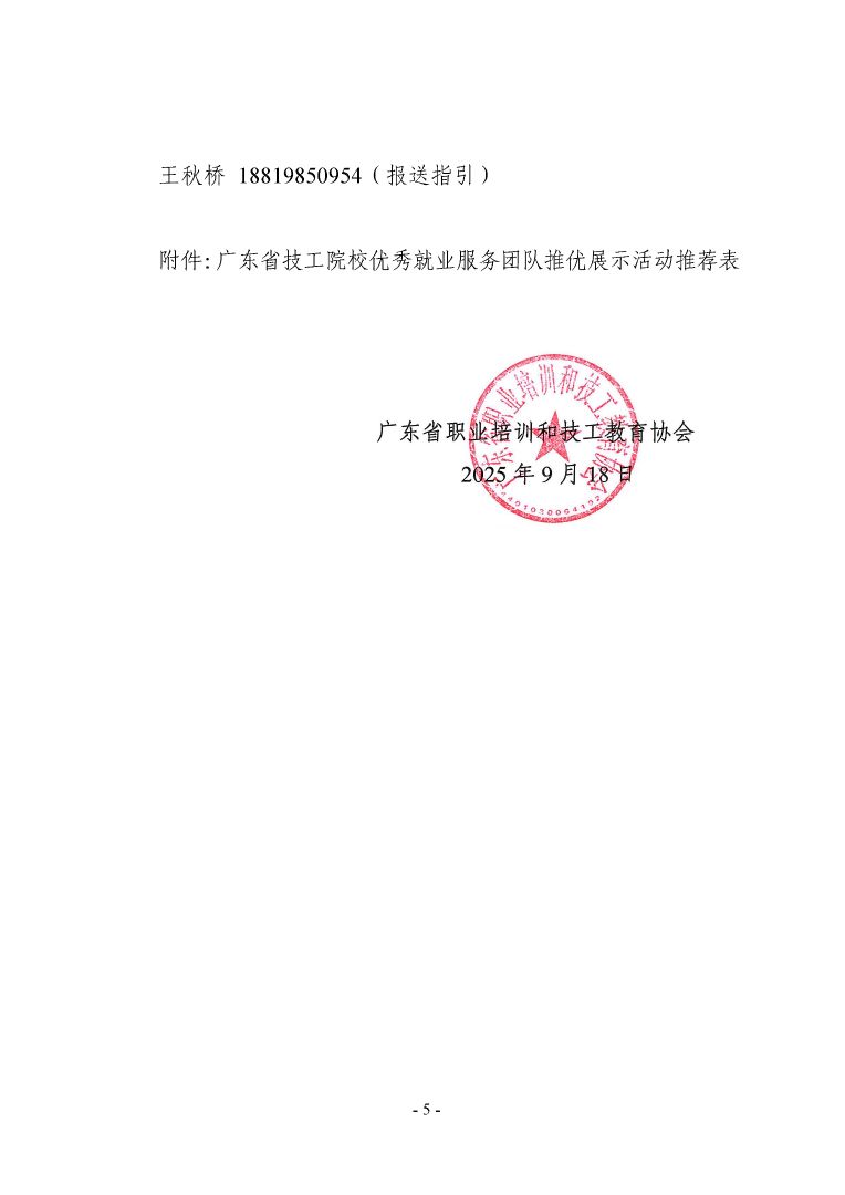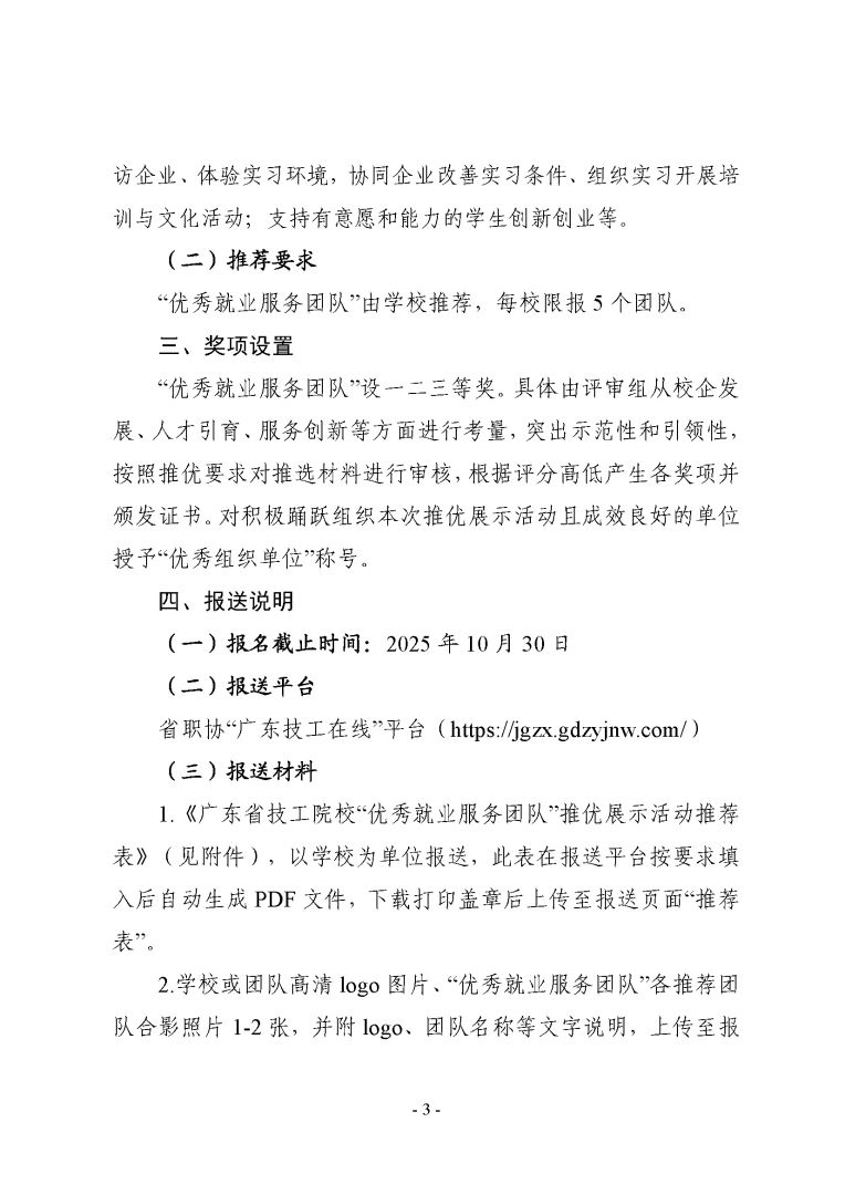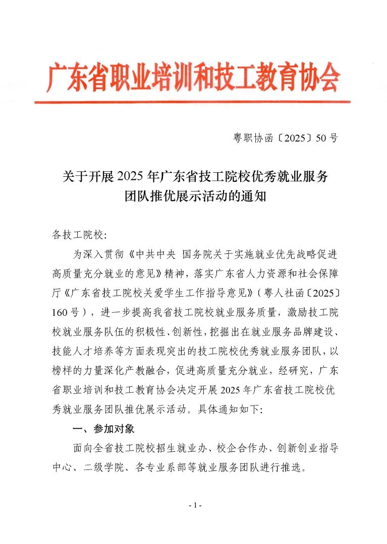 关于开展2025 年广东省技工院校优秀就业服务团队推优展示活动的通知(粤职协函〔2025〕50 号)