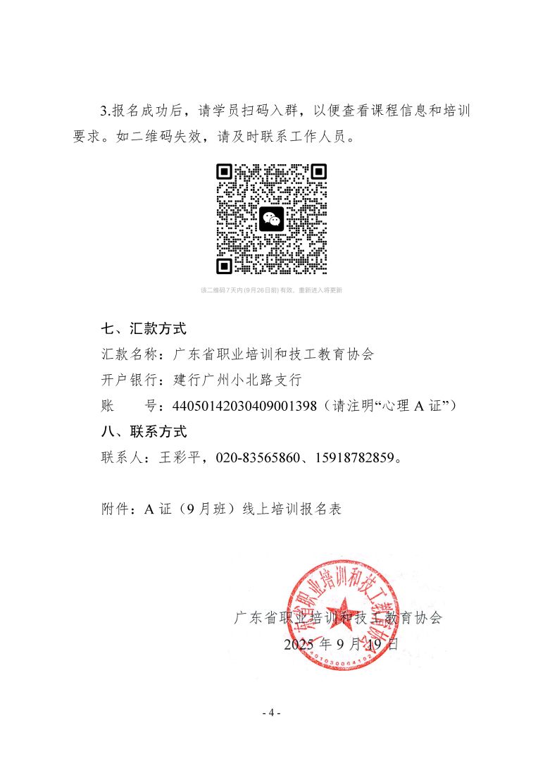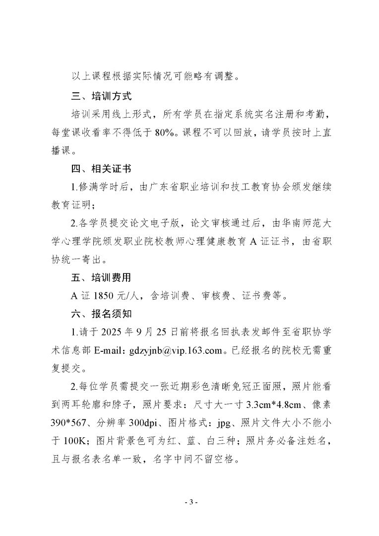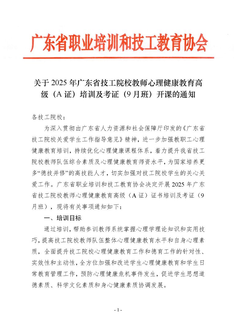 关于2025 年广东省技工院校教师心理健康教育高级(A 证)培训及考证(9 月班)开课的通知