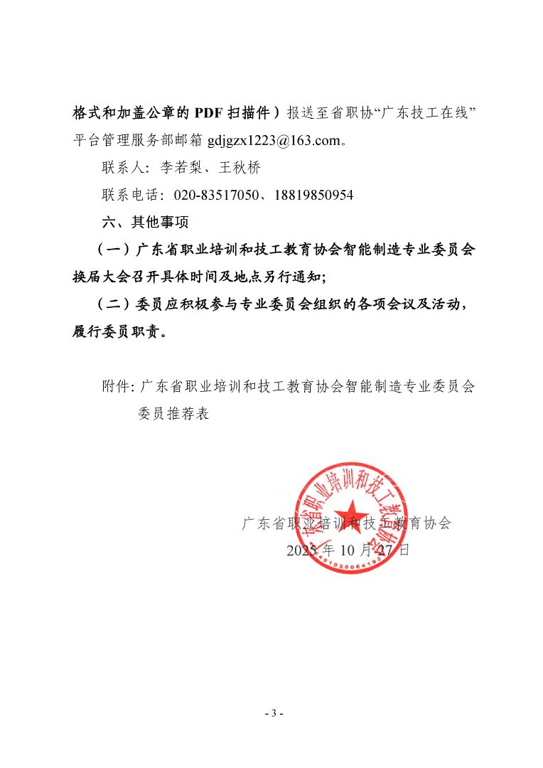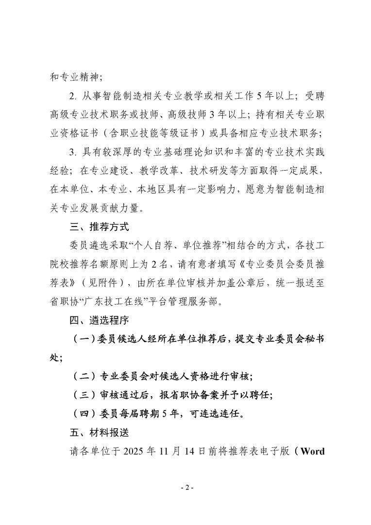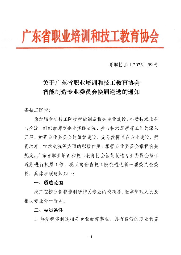 关于广东省职业培训和技工教育协会智能制造专业委员会换届遴选的通知