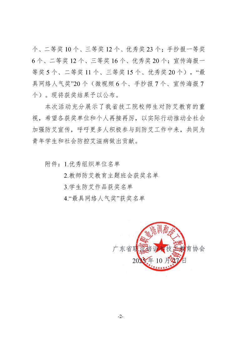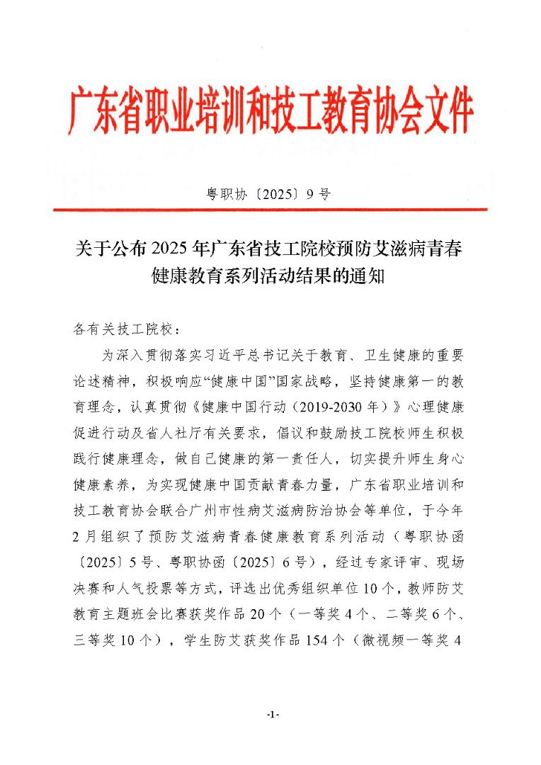 关于公布2025 年广东省技工院校预防艾滋病青春健康教育系列活动结果的通知