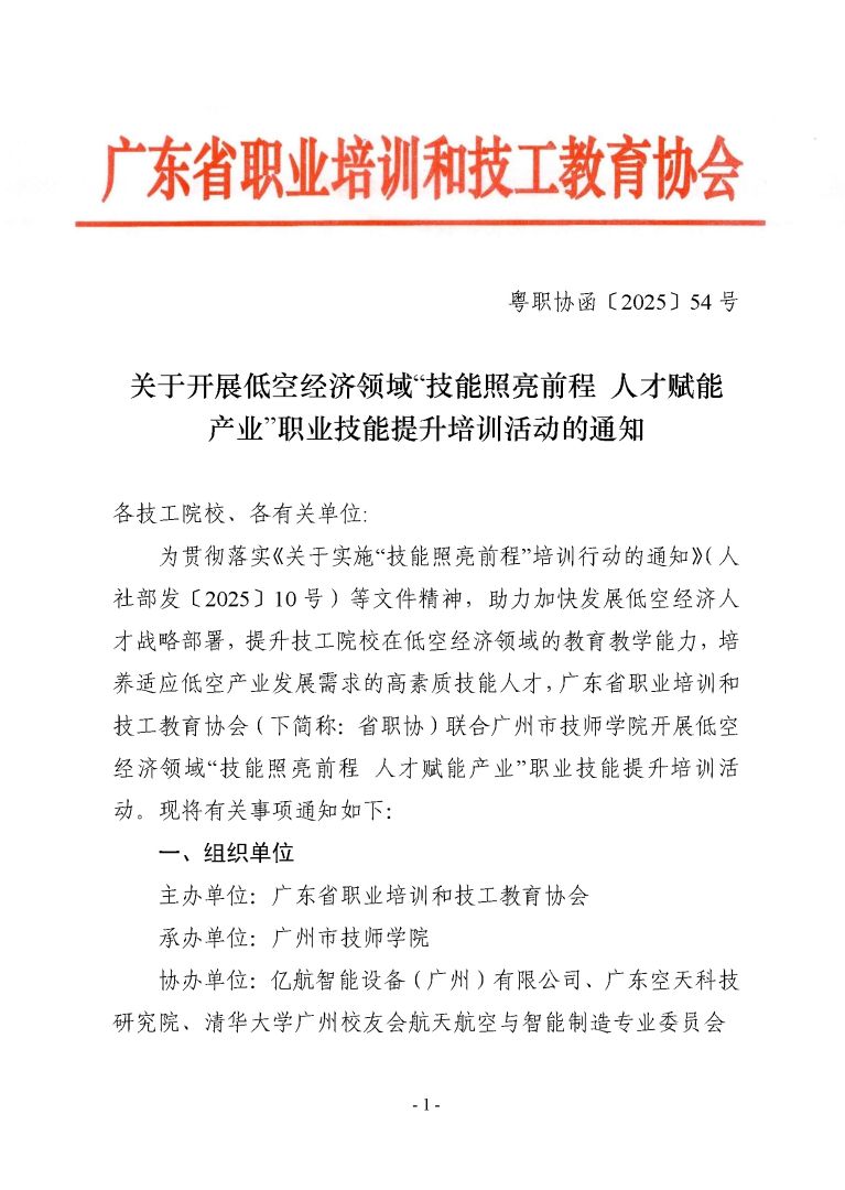 关于开展低空经济领域“技能照亮前程人才赋能产业”职业技能提升培训活动的通知