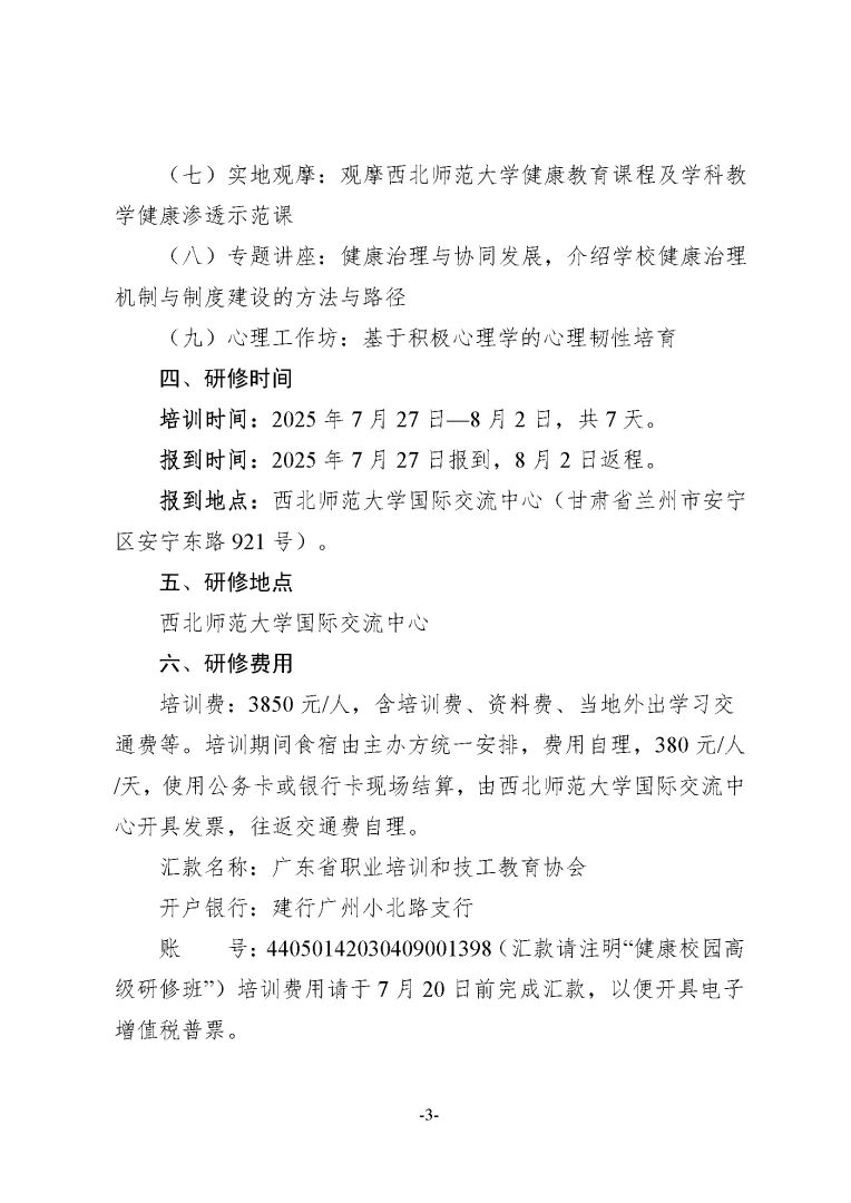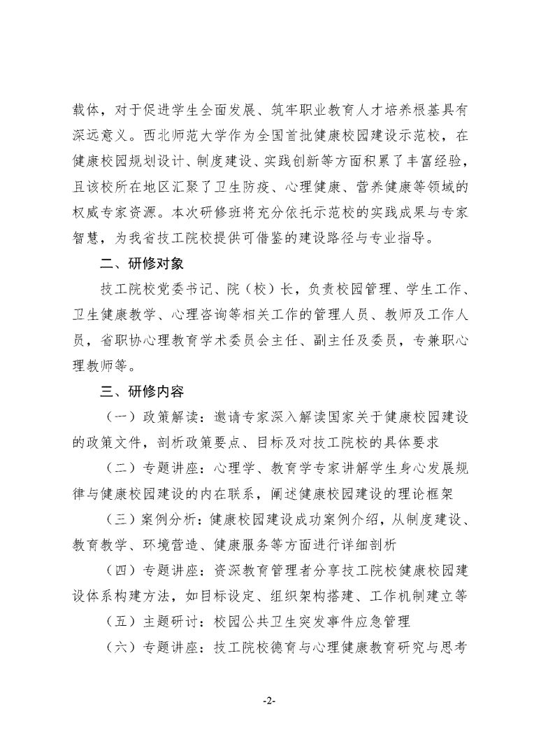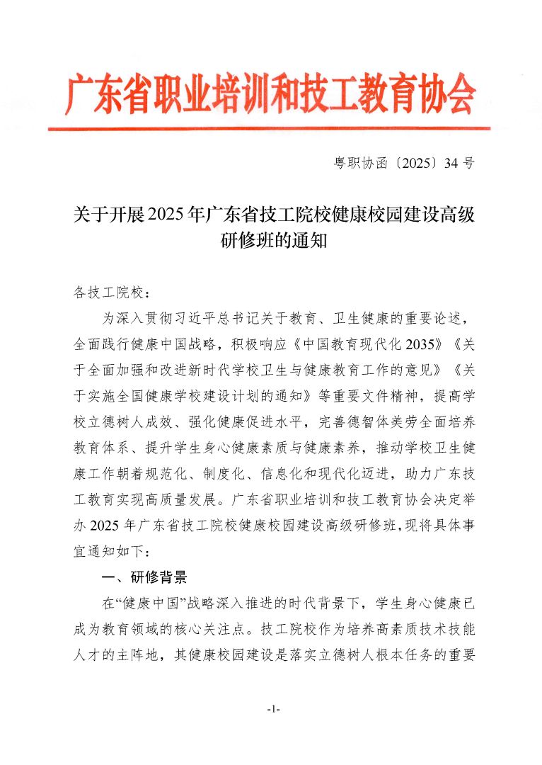 关于开展2025 年广东省技工院校健康校园建设高级研修班的通知(粤职协函〔2025〕34 号)